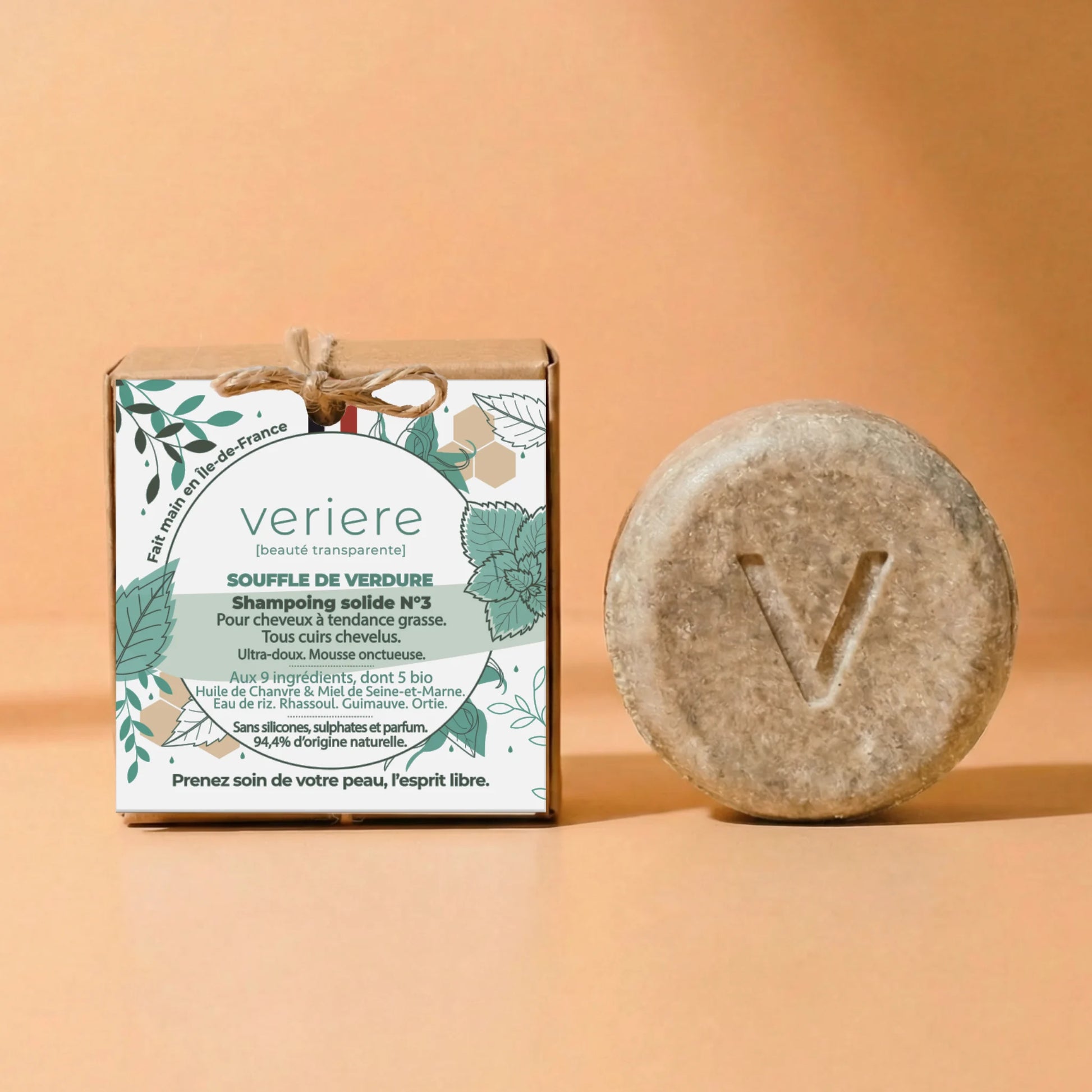 Un champú sólido para cabello graso, especialmente diseñado para cueros cabelludos sensibles, incluida la alopecia androgenética. Con sólo 9 ingredientes, incluido el aceite de cáñamo orgánico de Seine-et-Marne y la miel de tilo de Thorigny-sur-Marne. Hecho a mano en el laboratorio Veriere de Thorigny-sur-Marne.