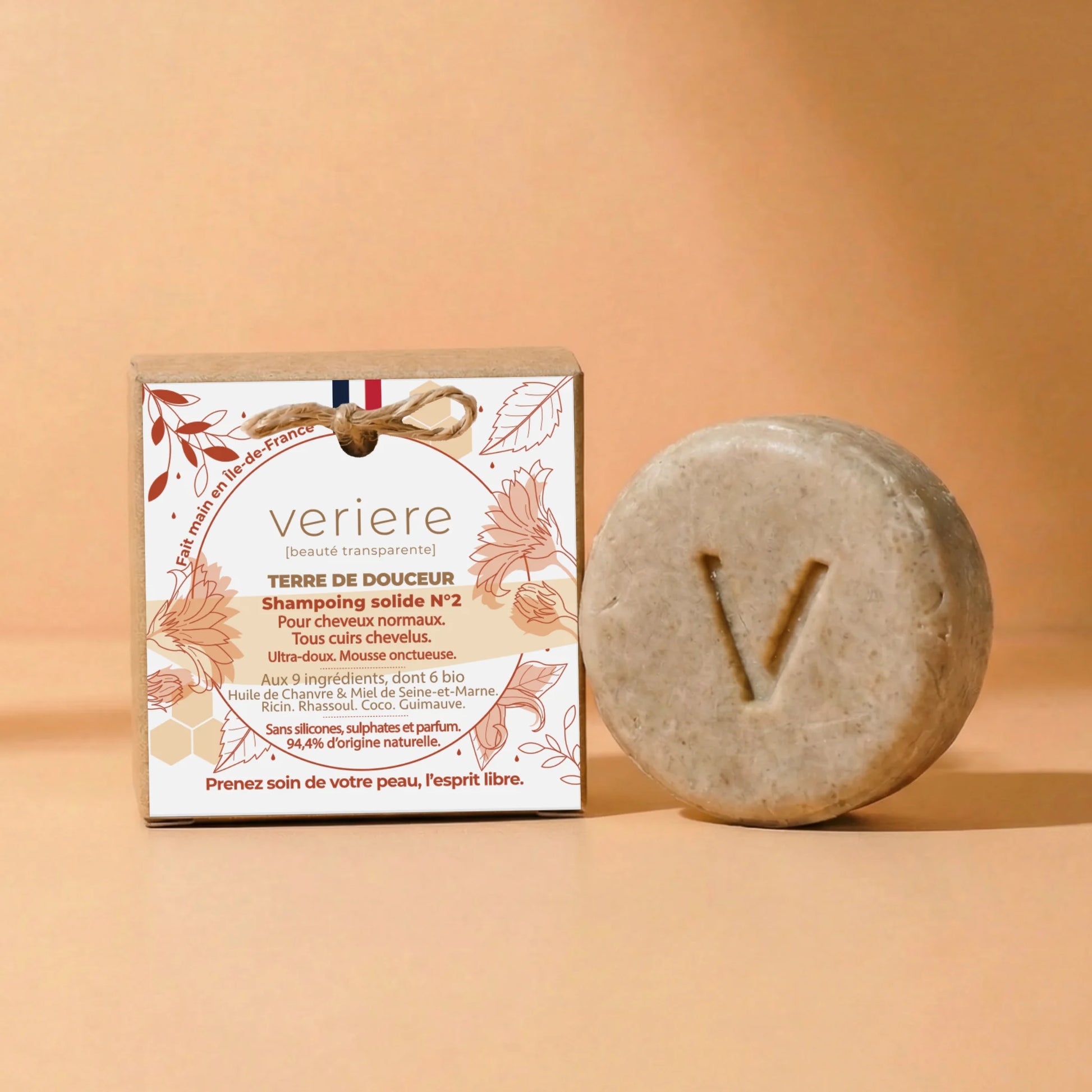 Un champú sólido para cabello normal, especialmente diseñado para cueros cabelludos sensibles, incluida la alopecia. Con sólo 9 ingredientes, incluido el aceite de cáñamo orgánico de Seine-et-Marne y la miel de tilo de Thorigny-sur-Marne. Hecho a mano en el laboratorio Veriere de Thorigny-sur-Marne.